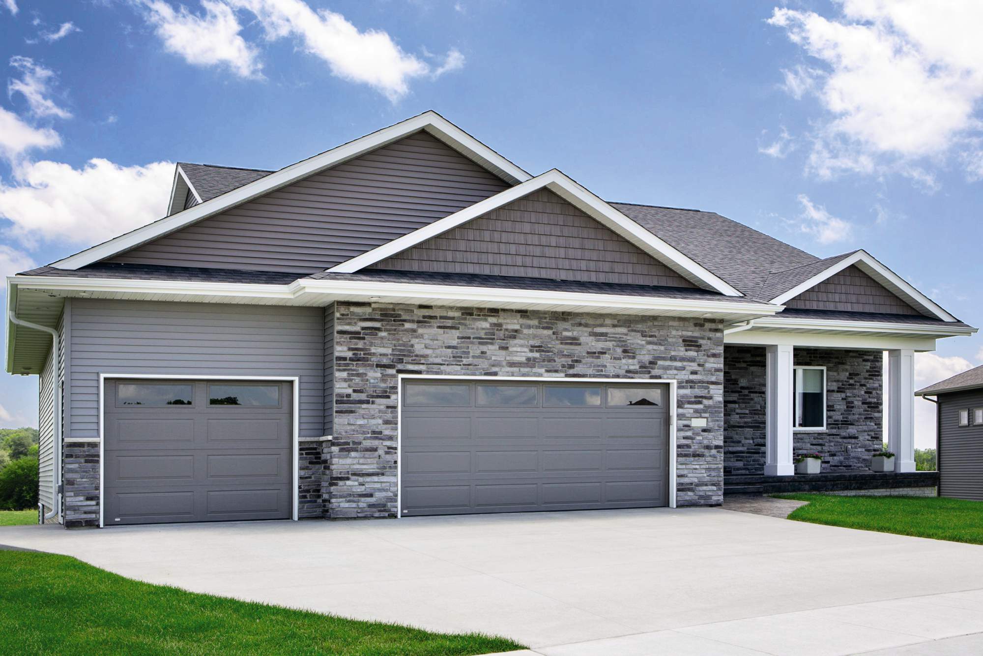 A variety of decorative window trim designs are available to enhance your garage door and home.